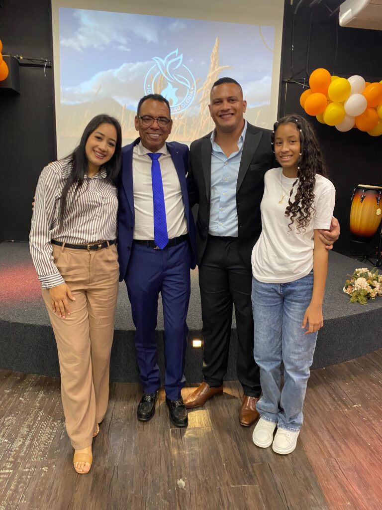 En la imagen la pastora Briggitte Chaparro, el Apóstol Abelardo Daza, el profeta Edson y Victoria